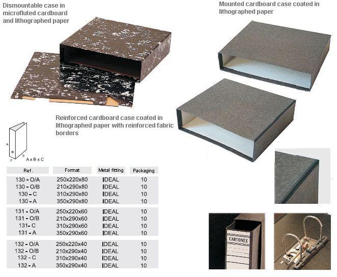 File folders in fiber cardboard with printed label, lever metal fitting, heel and circular opening.