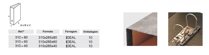 Arquivadores em cart o revestido a papel litografado, c/ ferragem de alavanca, calcador, culo e r tulo impresso, c/ e sem protec o met lica.