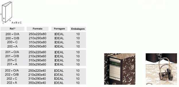 Arquivadores em cart o revestido a papel litografado, c/ ferragem de alavanca, calcador, culo e r tulo impresso.